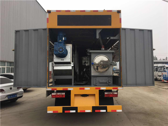結(jié) 構(gòu):廂式結(jié)構(gòu),內(nèi)部主要固定裝置為:發(fā)電機(jī)、真空泵、排污泵、分離箱、污水箱、加藥箱、混凝槽、疊螺機(jī)。