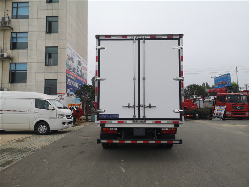 箱體內(nèi)外玻璃鋼,8cm高密度保溫板,底板防滑花紋鋁板,箱體加固做4排肉鉤導(dǎo)軌,配60個(gè)肉鉤,加裝華泰-15度制冷機(jī)組,帶單側(cè)門。
