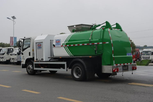 弧形罐體,邊四底五/邊五底六。2.長源/皖液油泵,長源/中梅多路閥,知名液壓油缸。3.全推鏟卸料(不帶舉升功能),具有干濕分離功能。液壓后蓋,后蓋配防腐硅膠密封條。4.后門液壓鎖緊5.鏈條式提升機,可掛120/240升標準塑料垃圾桶。進料口蓋液壓開關(guān)。6.駕駛室內(nèi)電控(提升機外部手動**),后門鎖緊與后蓋開關(guān)的操作具有防誤操作。7.箱體帶清洗裝置(液壓馬達帶動高壓泵、帶水箱)。